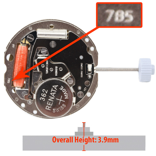 La altura desde la parte inferior del movimiento de reloj a la parte superior del segundo piñón de barrido es de 3,9 mm